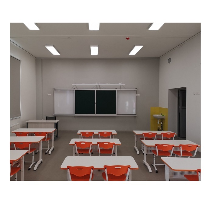 Рельсовая система представляет собой единую конструкцию, состоящую из каркаса и четырех рабочих поверхностей с магнитно-меловым, магнитно-маркерным или комбинированным покрытием.