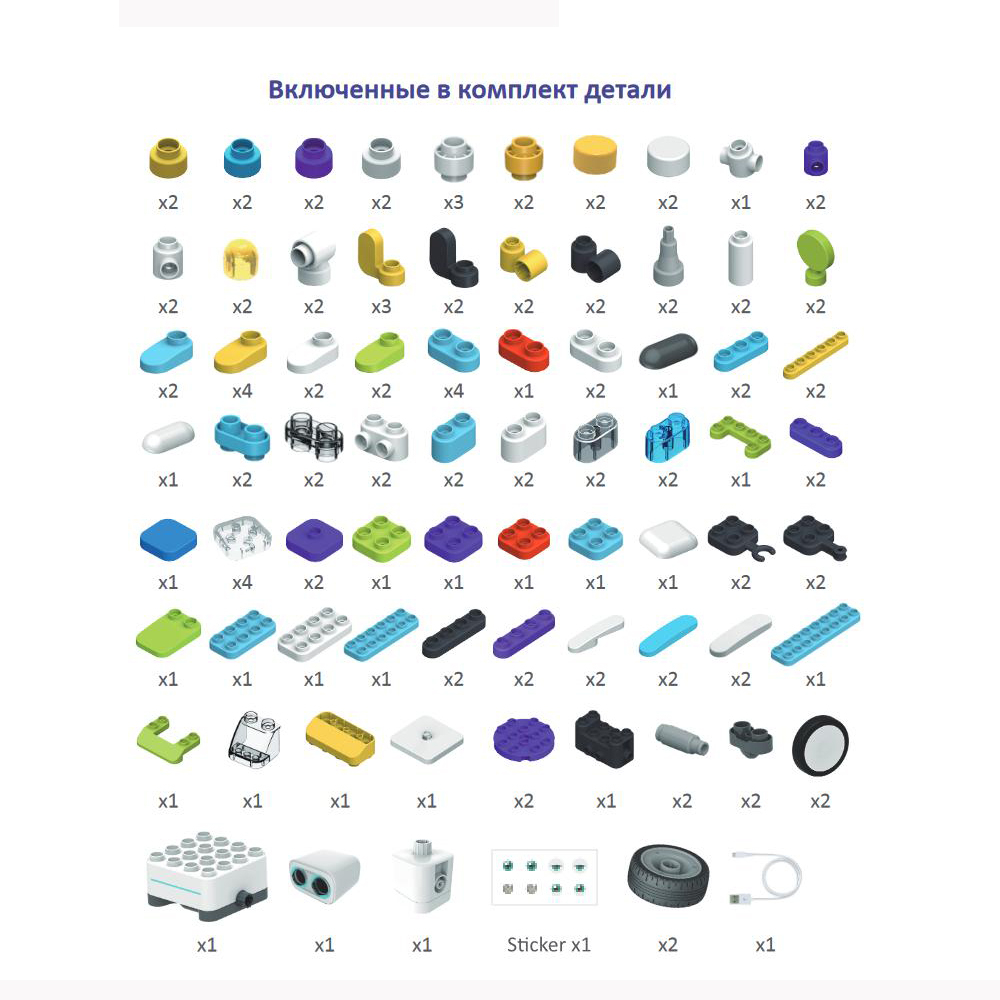 Набор позволяет собрать одного из восьми уникальных веселых роботов. В составе набора содержится программируемый блок управления с двигателями и модулями связи, датчик расстояния, сервоприводный блок и конструктивные элементы для постройки робота. Программирование осуществляется в визуальной среде на мобильном устройстве с использованием игровой дополненной реальности. Подключение по Bluetooth. Робот может двигаться, светиться, танцевать, и издавать звуки.
